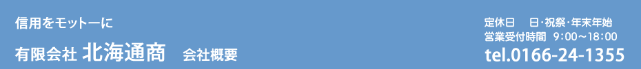 有限会社 北海通商 〒070-0030 北海道旭川市宮下通13丁目1199番地 SKタイムビル2F TEL.0166-24-1355 FAX.0166-24-1356